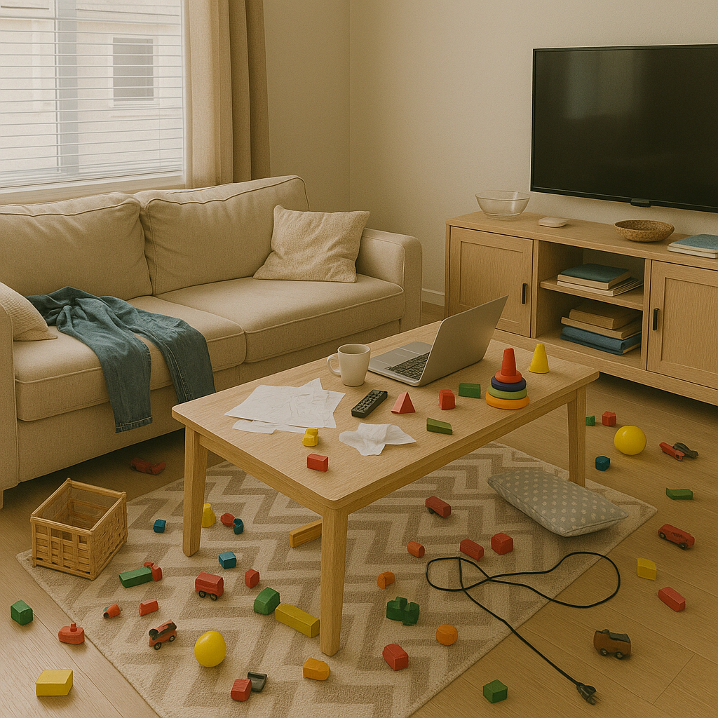 「とりあえず棚の上」「出しっぱなし」が積み重なり、リビングがごちゃごちゃする原因に。
