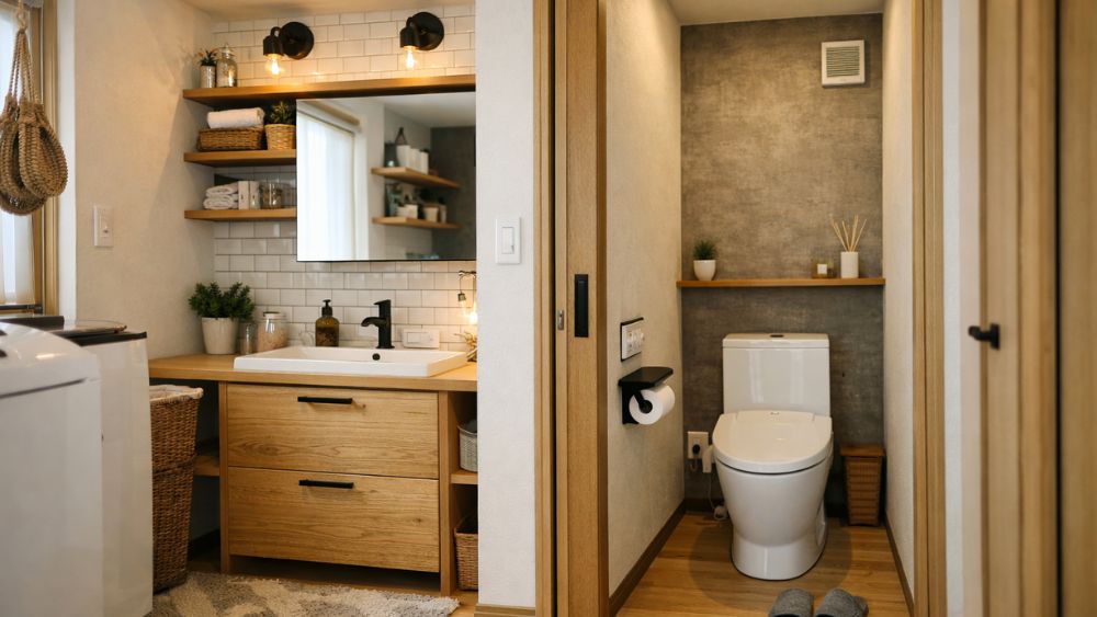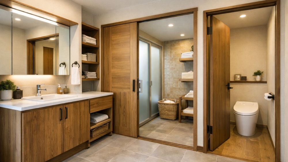 扉の向きを変えるだけでも音や視線のストレスは減りますし、洗面と脱衣を分ける間取りにすれば、使い勝手が大きく改善されます。