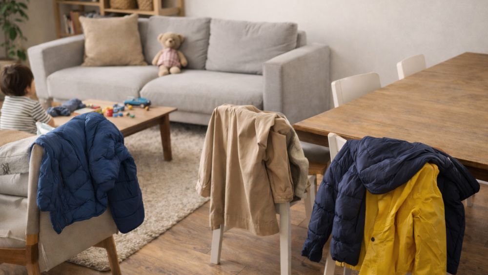 寒い季節や雨の日、出入りのたびに脱ぎ着するコートやジャケット。